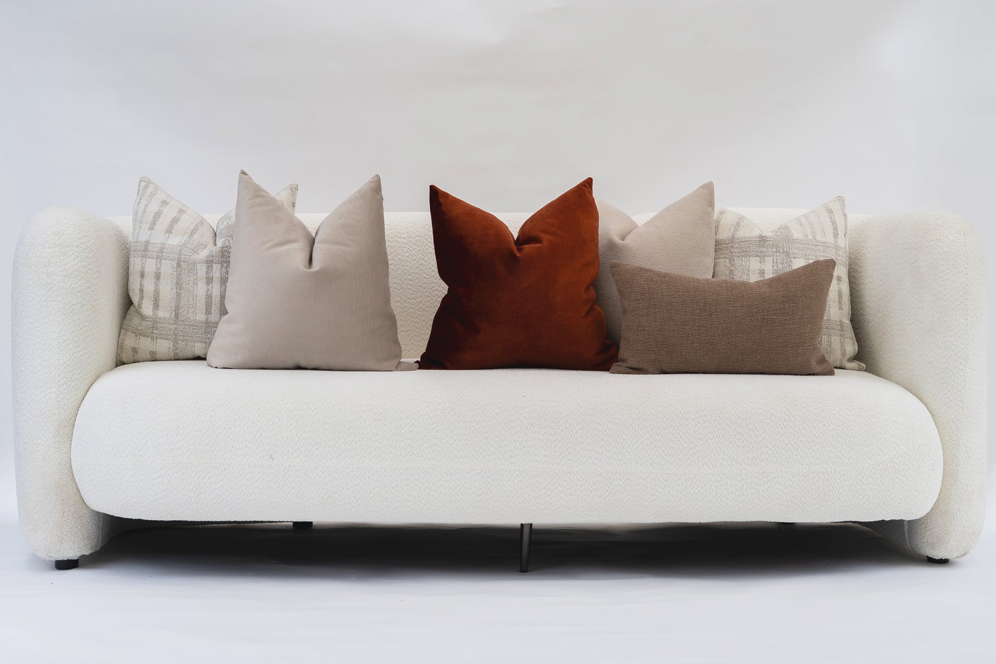 Dale vida y calidez a tu espacio con este set de cojines en tonos neutros y terracota.
